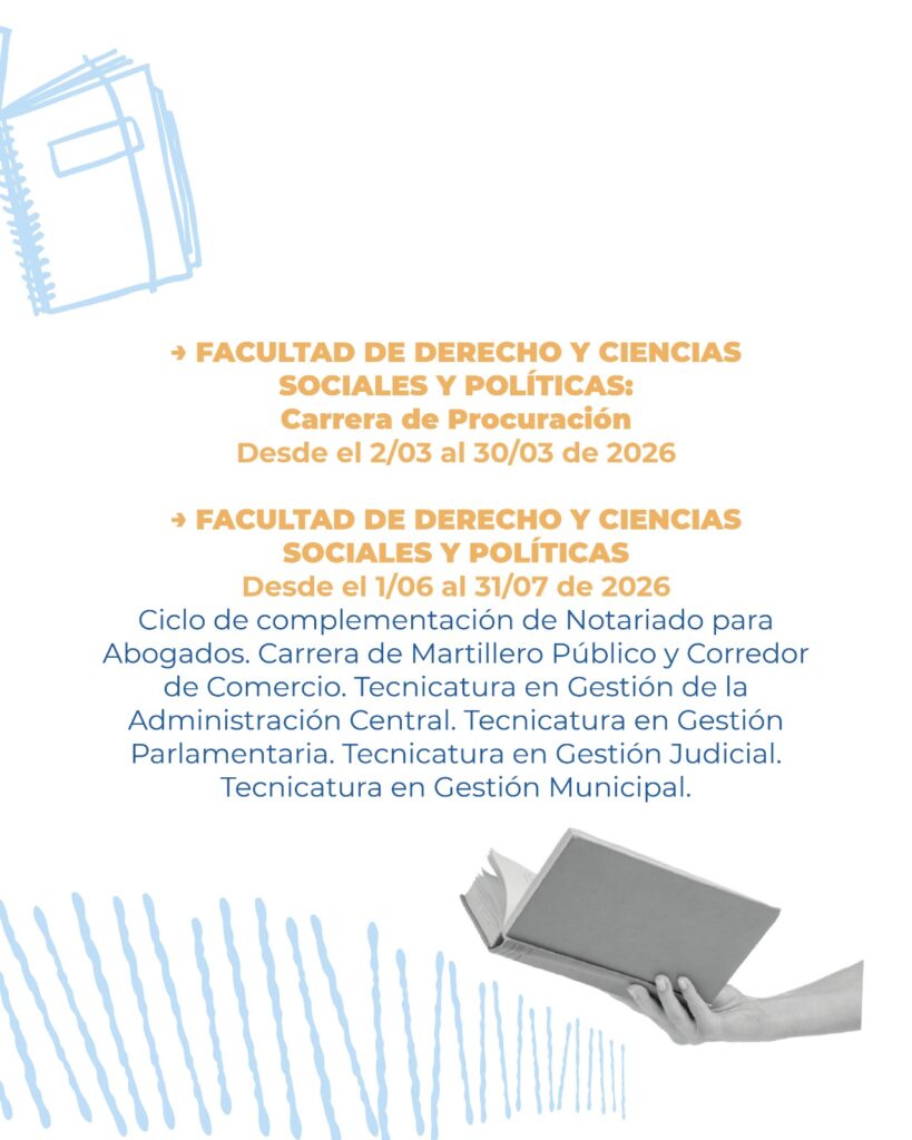 - Derecho y Ciencias Sociales y Políticas – Procuración: del 2 al 30 de marzo